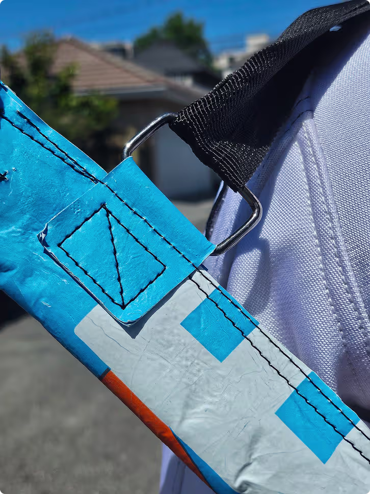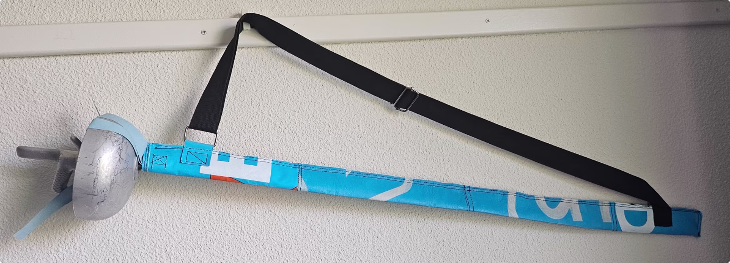 Overall, the product was successful. Plastic bags can be reused and upcycled in this manner, and the process produces very little waste. In the future, I would have added more considerations for the sword itself and how it interacts with the plastics. Because the plastics are non-porous, moisture can build up inside the sheath, so I added silica packs to manage humidity. Additionally, more long-term testing should have been done on the structure of the plastic after repeated use. The tassels shown holding the sword in place in image 4 eventually broke and needed to be replaced with a more durable material.