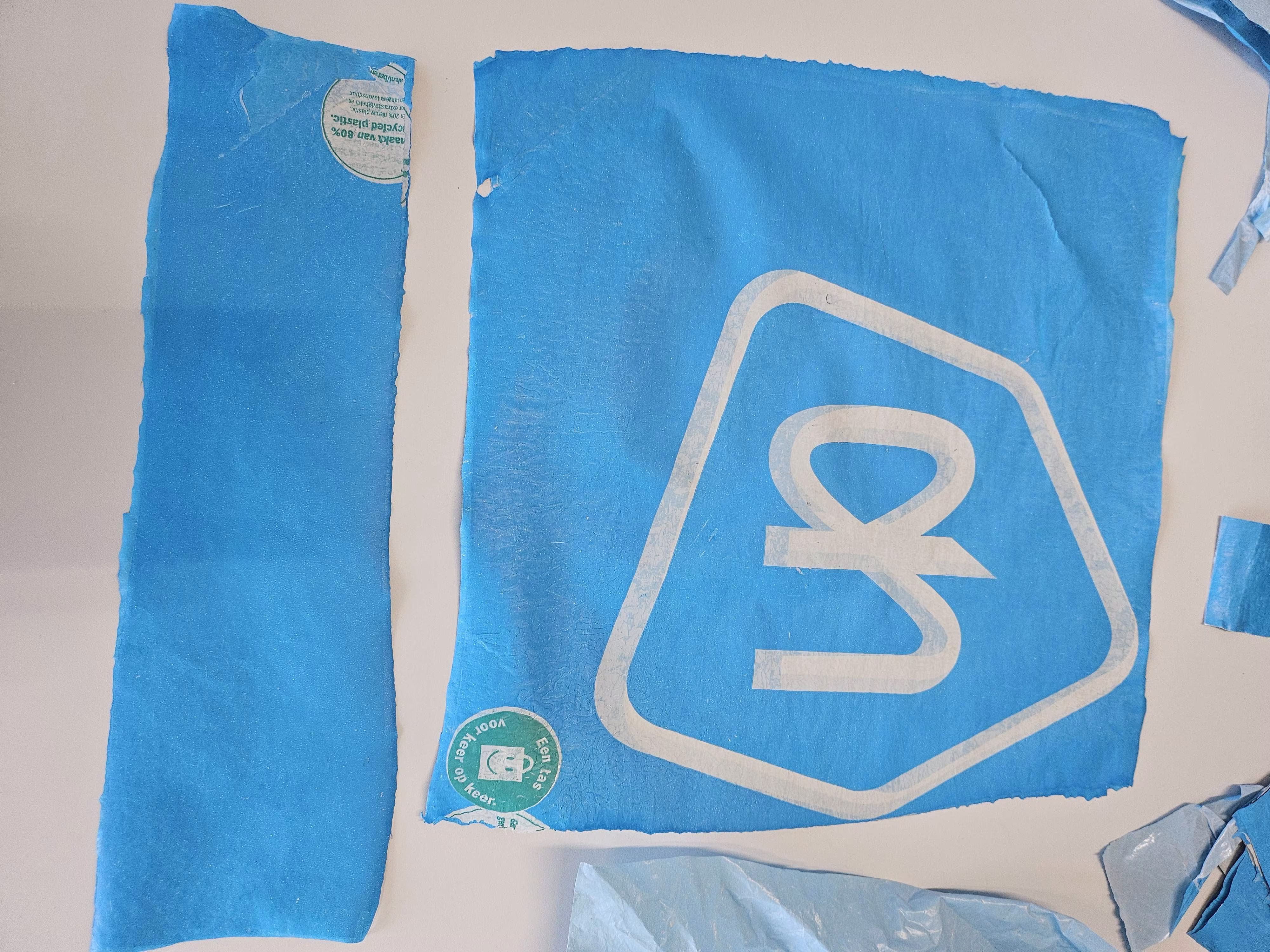 After a couple trips to the grocery store Albert Heijn, I began to accumulate a mass amount of plastic bags that I could not reasonably use. The extras would be destined for the landfill, so I researched ways to reuse plastics for crafting and textile use. By using a heat press to combining multiple sheets of plastic, I was able to fabricate and use these leather like materials to develop a sword sheath for fencers.